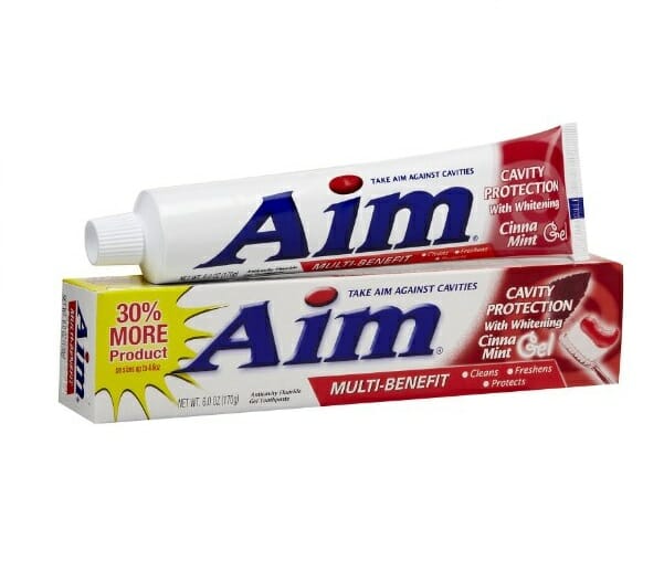 Зубная паста-гель AIM производства США (170 г. — Эконом упаковка) со  вкусом корицы и мяты качественно защищает полость рта и имеет лёгкий отбеливающий эффект.