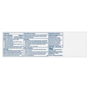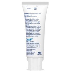 Sodium Fluoride, Water, Sorbitol, Hydrated Silica, Disodium Pyrophosphate, Sodium Lauryl Sulfate, Flavor, Cellulose Gum, Sodium Hydroxide, Sodium Saccharin, Carbomer, Xanthan Gum, Polyethylene, Mica, Titanium Dioxide, Blue 1 Lake