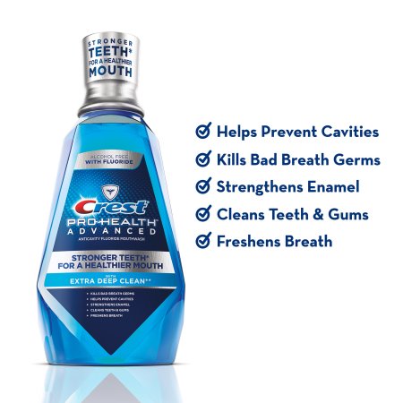 Crest Pro-Health Advanced with Extra Deep Clean Mouthwash это глубокая очистка полости рта с укреплением зубной эмали*. Убивает плохие дыхательные бактерии. Очищает зубы и десны. Содержит фторид для предотвращения образования кариеса. Прекрасный помощник в очистке полости рта, при ношении брекет систем и использовании ирригатора.